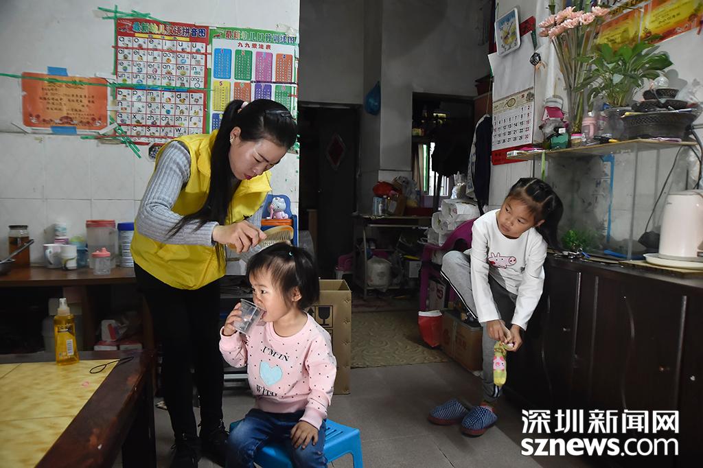 陳永美在為剛起床的小女兒欣瑤梳頭,這是每天的“固定動作”,只要有時(shí)間,她便愿意為女兒們做一些事情