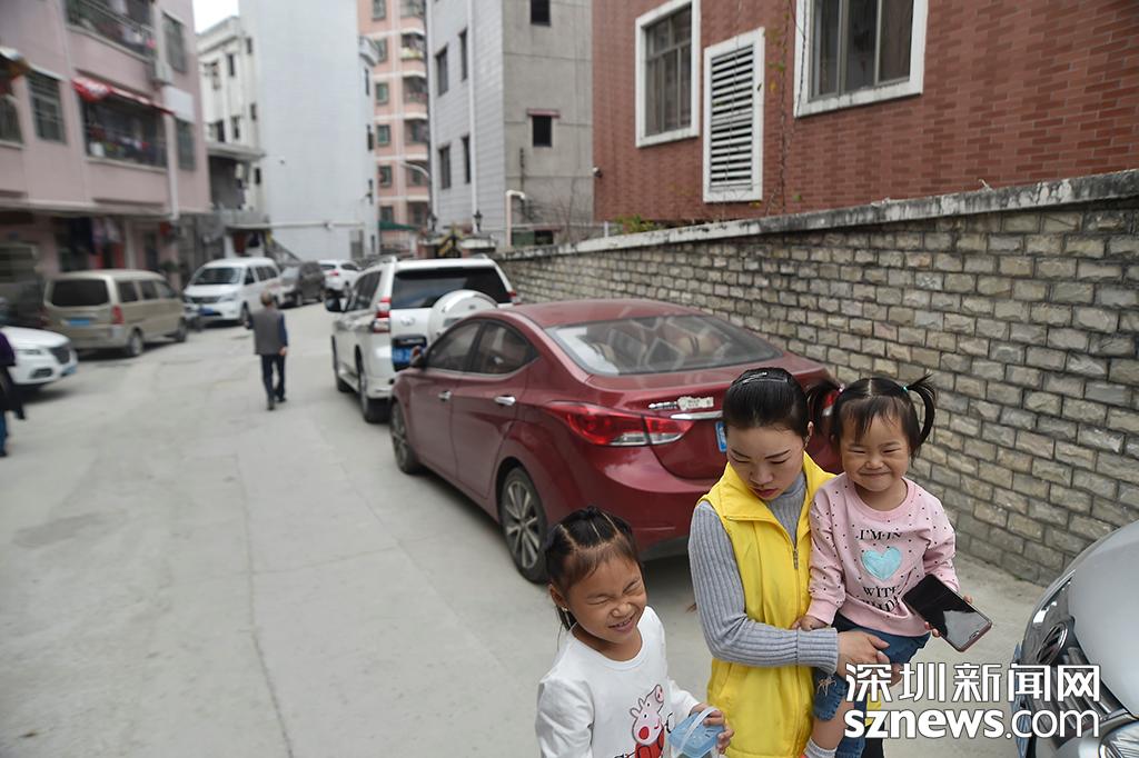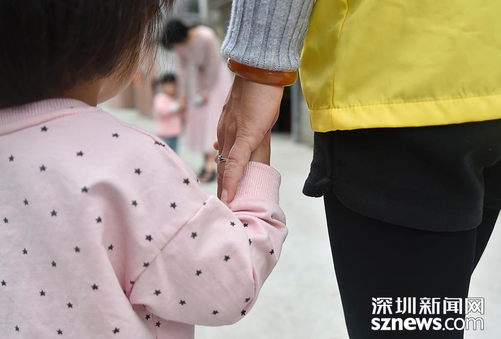 陳永美牽著小女兒的手,這兩個(gè)小孩是支撐她在外工作的最大動力