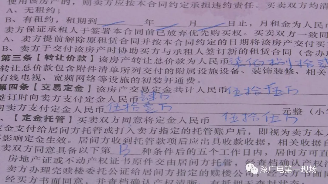 王先生:“中介說(shuō)可以辦理假離婚,而且可以把假離婚手續(xù)辦到兩年前,首付就可以三成,我們當(dāng)時(shí)求房心切,就采取了信任對(duì)方?!?/p> 繳納定金60萬(wàn)了解風(fēng)險(xiǎn)很后悔