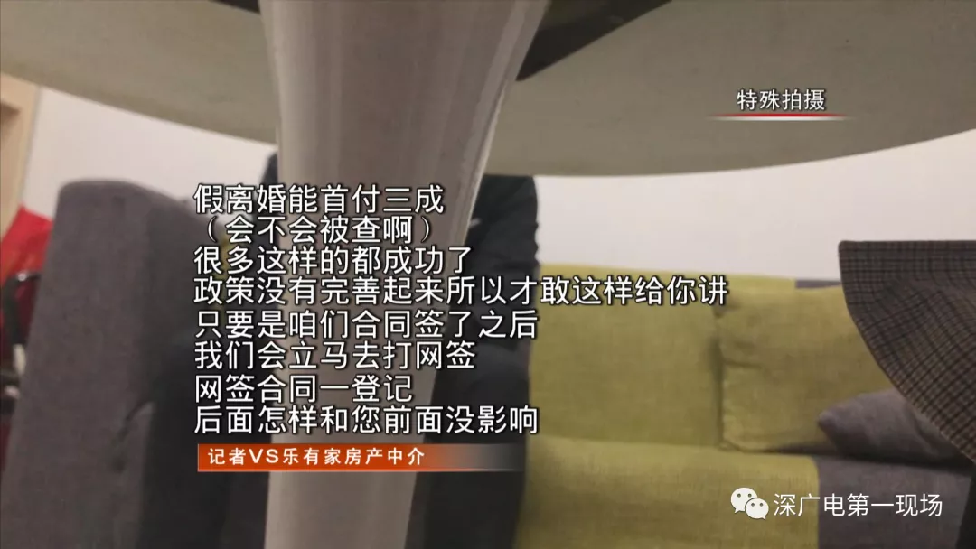 因?yàn)檫@家店已經(jīng)被王先生投訴,這名中介人員顯得非常謹(jǐn)慎,始終沒(méi)有說(shuō)出“假離婚”三字。隨后記者來(lái)到附近的樂(lè)有家蘭溪谷分店,得知記者的買(mǎi)房條件后,工作人員先是告訴記者第二套房需要首付七成,看記者有購(gòu)房意向,隨后改口稱可以幫忙辦理“假離婚”,不過(guò)要趁早。