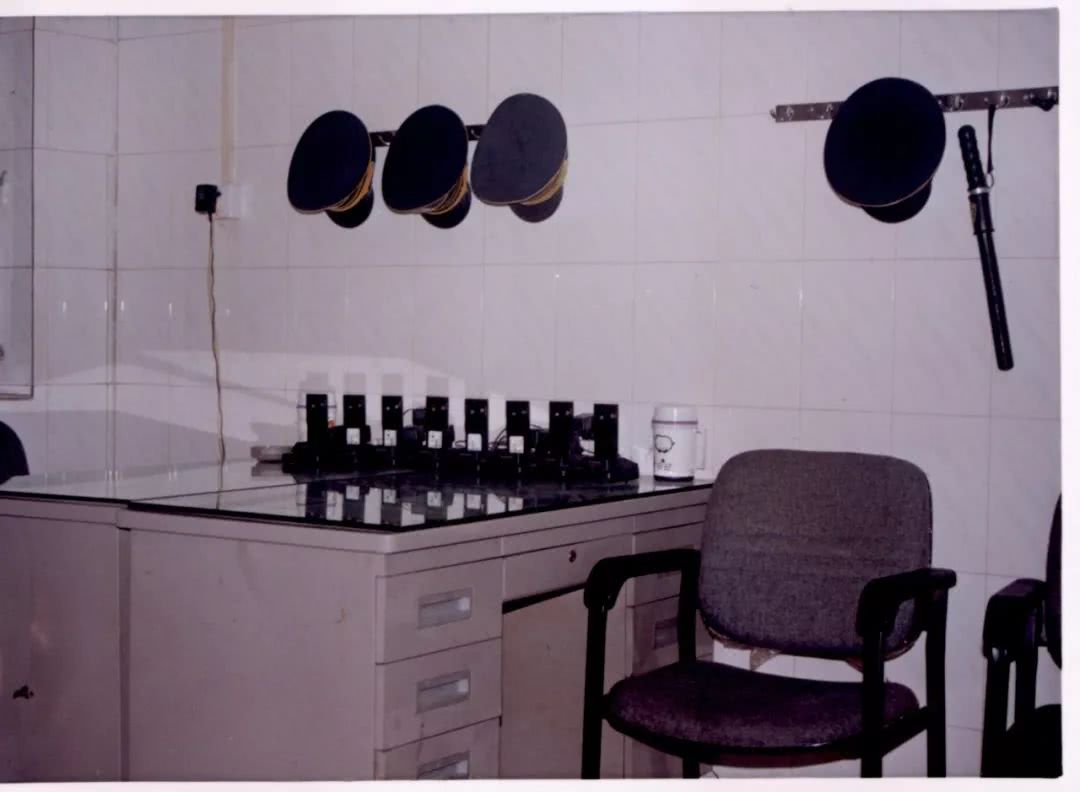 照片中,在水泥門樓的一側(cè)掛著一塊政府機關(guān)牌匾,白底黑字落有“深圳市公安局福田派出所”幾個大字。門樓上的五星紅旗熠熠生輝,透過門樓,內(nèi)部有個寬敞的小院,供巡邏車停放及日常操練,再往里走便是一幢3層樓高的辦公樓,辦公樓的中央懸掛一枚警徽,彰顯警隊的莊嚴。一樓是戶政室,一縷陽光透過窗戶灑進來,讓辦事的群眾感到溫暖,也給門欄上“堅持原則 方便群眾加強管理熱忱服務(wù)”16個字鍍上了金邊,這是福田派出所對轄區(qū)老百姓的堅定承諾。