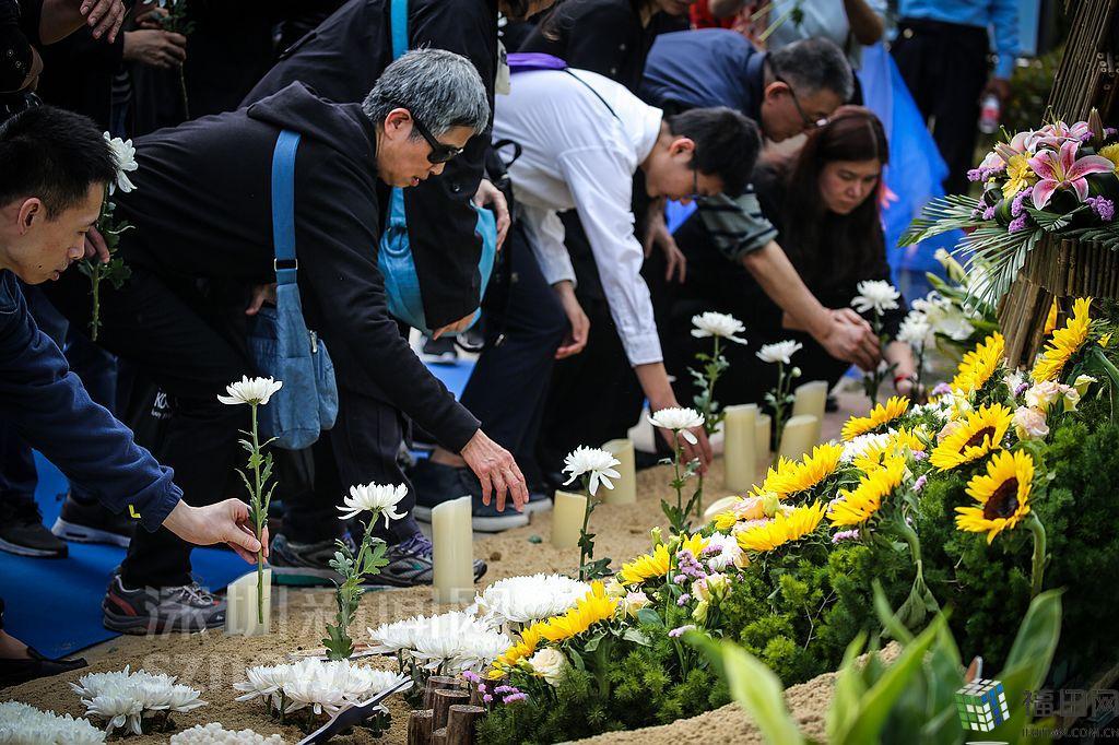 參與海樹葬的家屬手持獻(xiàn)花。近年來,生態(tài)殯葬被更多的深圳人所接受。