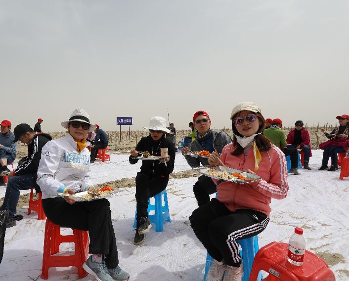 共120余人在麥蓋提縣百萬畝防風固沙林基地