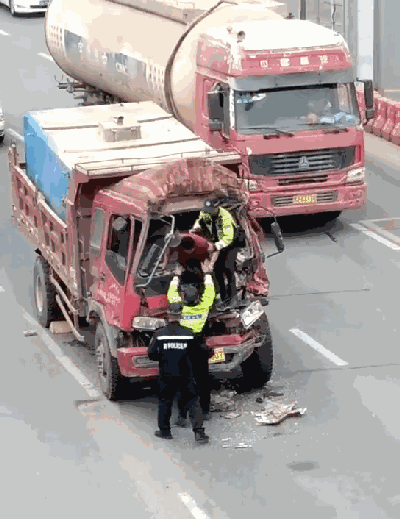 5分鐘,成功施救。經(jīng)過(guò)努力,交警成功將司機(jī)從車(chē)輛前窗救出,并扶至路邊等待救護(hù)車(chē)。
