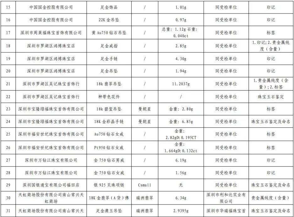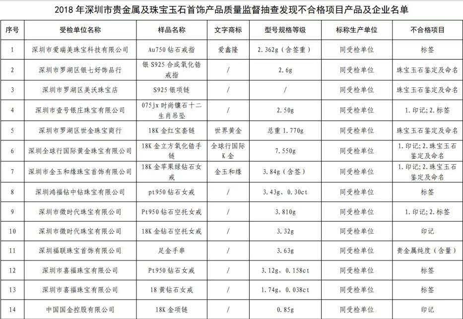 原標(biāo)題:深圳最新抽檢珠寶抽檢結(jié)果公布不合格產(chǎn)品發(fā)現(xiàn)率16.3%