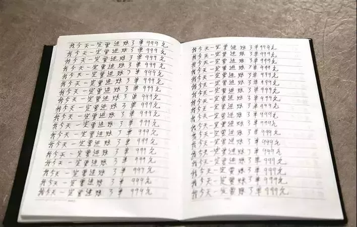 原來,楊某所在的部門員工都沒有底薪,全靠做單提成,做成一個999元的單,可以得到450元提成,可是他來了快一個月了還一直都沒有做成過一單,已經成了執(zhí)念,所以就在筆記本上反復寫了這句話激勵自己。
