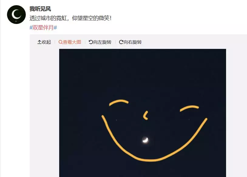 火星的顏色有些偏紅,作為嘴巴的月亮位置有些歪,這張笑臉可謂是笑歪了嘴,笑紅了眼,笑扁了臉。