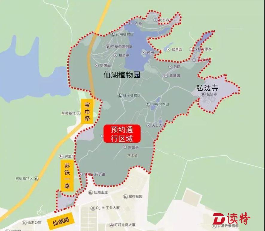 仙湖路(蓮十路東段)及仙湖植物園,含仙湖植物園正門立體停車樓,仙湖植物園內(nèi)弘法寺停車場(chǎng)。