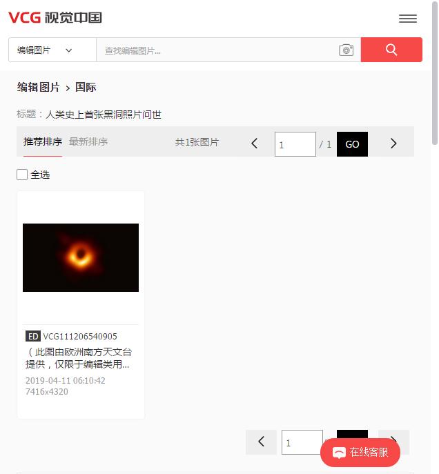 這就是網(wǎng)上爆出的視覺中國圖庫里里收錄的黑洞照片的頁面截圖