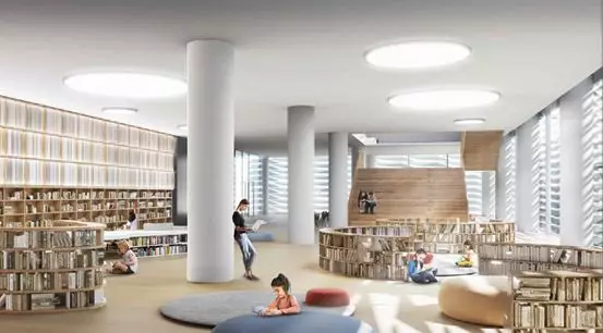 第二圖書館擁有全國最大的地下智能立體書庫,通過無線定位,物流小車自動(dòng)存取,提高圖書的利用率,同時(shí)設(shè)置觀察窗,給市民提供學(xué)習(xí)參觀的機(jī)會(huì),將智慧存取寓教于樂,同時(shí)還設(shè)置自助圖書館,為讀者提供便利條件;
