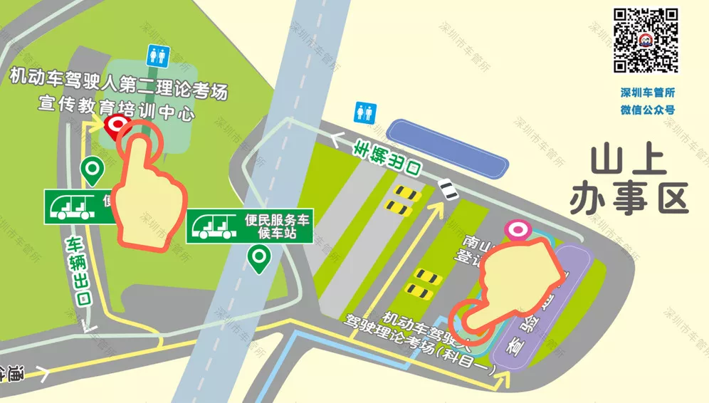 深圳市南山區(qū)龍珠三路原西麗車(chē)管所山頂辦公點(diǎn)2號(hào)樓一樓(4月30日起,增加夜考場(chǎng)次)。