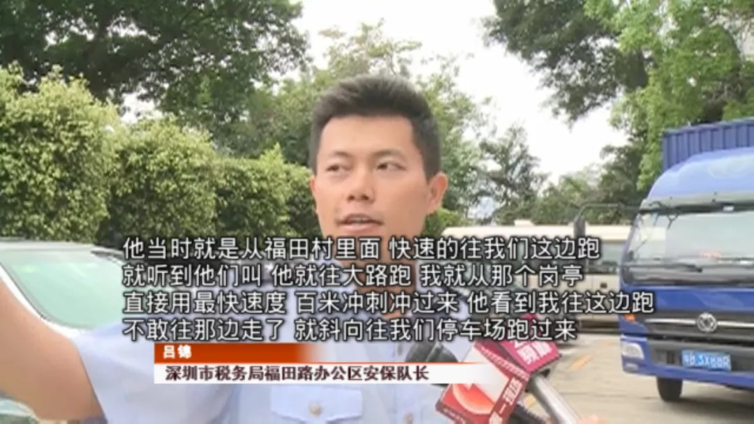 當(dāng)天早上,深圳市稅務(wù)局福田路辦公區(qū)的安保隊(duì)長(zhǎng)呂錦像往常一樣,正在崗位上值著早班。突然聽到外面一陣騷亂,他趕忙起身查看情況。