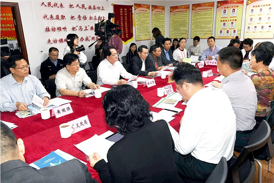 ▲駱文智、王強(qiáng)、麥林光等市、區(qū)領(lǐng)導(dǎo)參加月亮灣片區(qū)代表議事會。消息報記者黃雪波攝