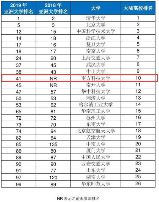 近日,2019年泰晤士亞洲大學(xué)排名出爐南科大排名內(nèi)地10強
