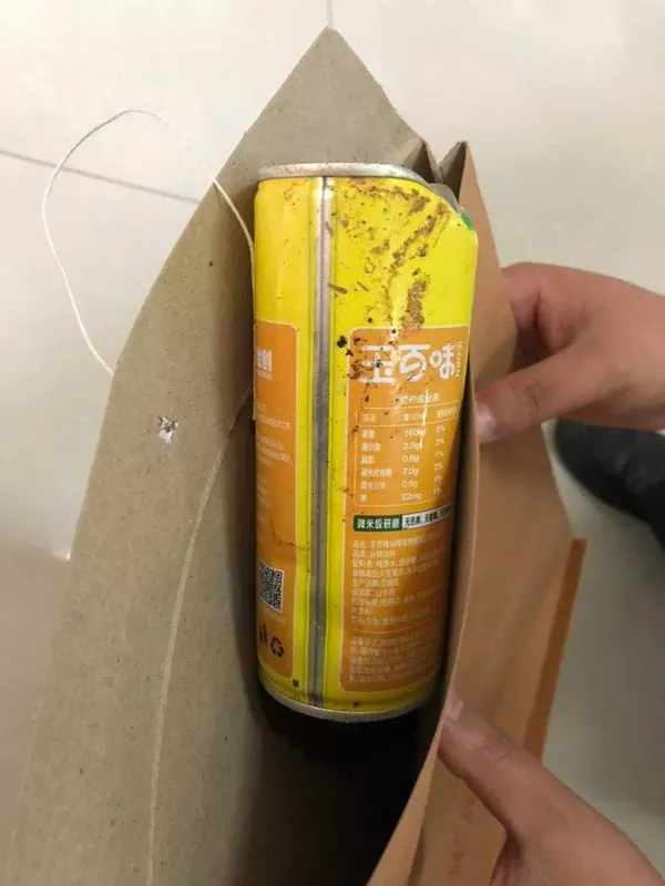 記者在小區(qū)物業(yè)管理處,見(jiàn)到了這個(gè)被封存的易拉罐,原來(lái)當(dāng)時(shí)拋下來(lái)的時(shí)候,這個(gè)罐子內(nèi)還有部分未喝完的飲料,增加了罐子的重量。
