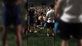 據當時在現場的深圳媒體人張國防介紹,那時他們剛跑完10公里,正和教練邊岐在草坪上放松,發(fā)現旁邊一名男子有些異常,突然倒下。
