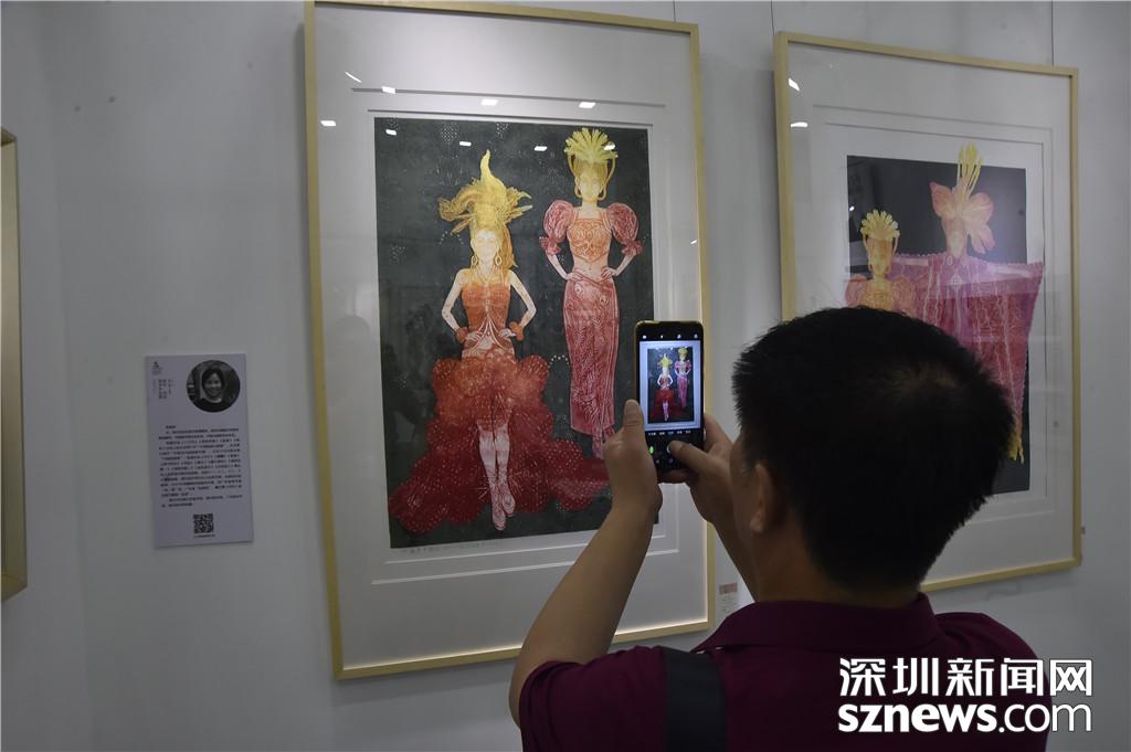 一位市民拿出手機將自己喜歡的畫作拍成照片