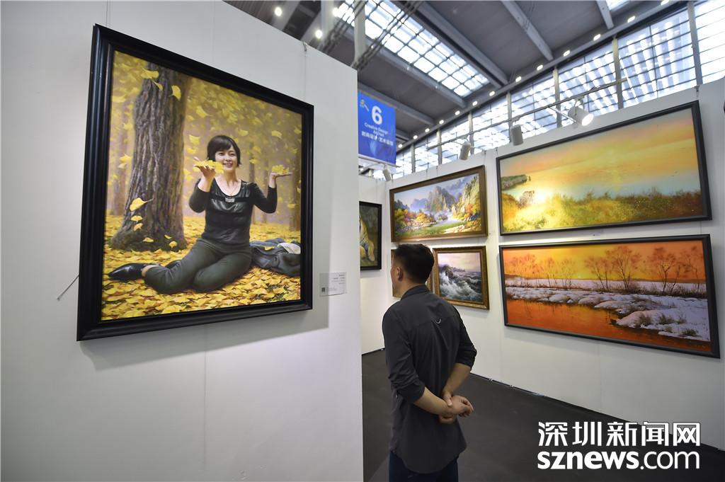 會(huì)展中心6號(hào)館,一位市民正在欣賞畫作