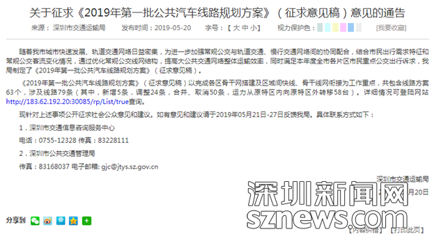 目前,市民可登陸網(wǎng)站http://jtys.sz.gov.cn/查詢詳細(xì)情況。同時,深圳市交通運輸局就上述事項公開征求社會公眾意見和建議,如有意見和建議請于2019年05月21日-27日反饋至深圳市交通運輸局。具體聯(lián)系方式如下: