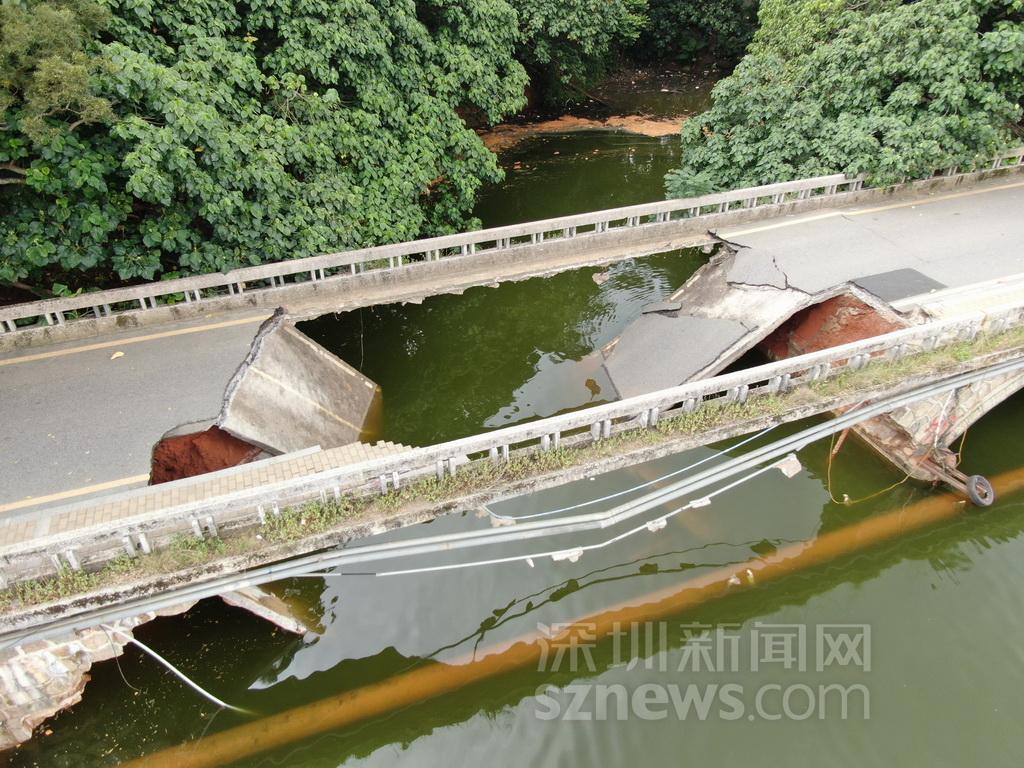 羅湖環(huán)湖路銀賓橋橋面坍塌現(xiàn)場(chǎng)