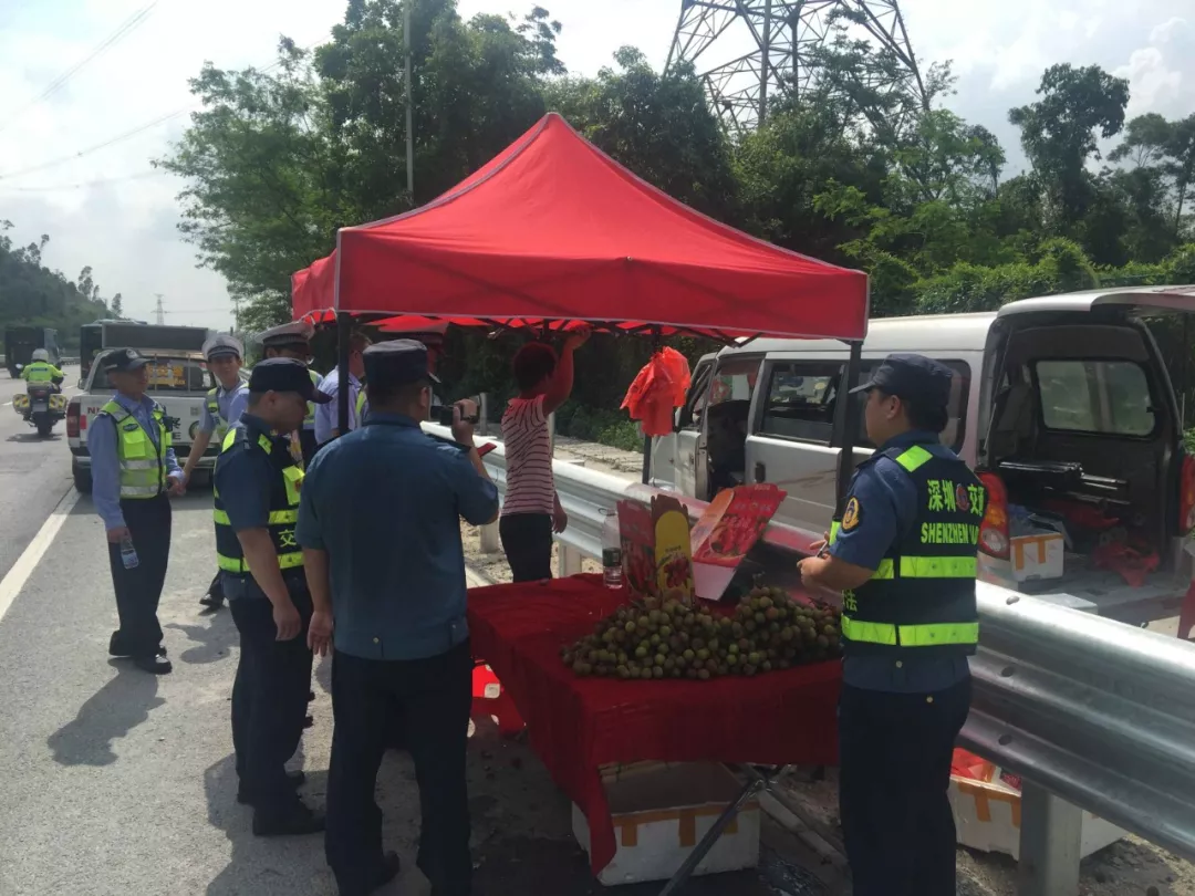 5月10日上午,當執(zhí)法支隊龍崗大隊巡查至橫坪快速路時,發(fā)現(xiàn)路邊有人在設點擺攤賣荔枝,執(zhí)法人員立即對其進行了口頭勸離與警告,告訴他們此番行為存在的潛在危險性,并把違反的相關(guān)法律法規(guī)一一告知。