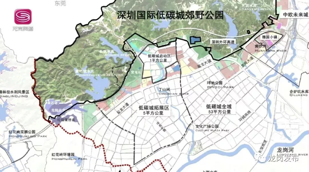 國際低碳城郊野公園項目位于國際低碳城北部區(qū)域,北側為東莞市,東北側為惠州市,占地15.18平方公里。