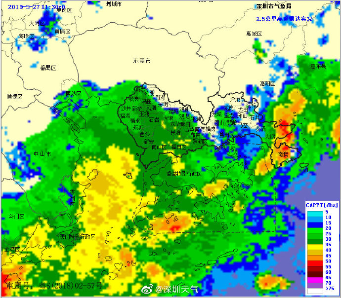 強(qiáng)降雨將趨于結(jié)束,深圳市氣象臺于2019年05月27日12時30分在全市取消暴雨黃色預(yù)警,預(yù)計今天白天仍有雷陣雨,部分時間雨勢較大,市民仍需注意遠(yuǎn)離河道和危險邊坡等