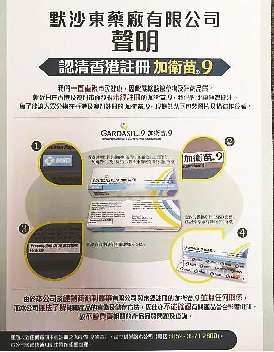 早前,HPV(全稱人乳頭狀瘤病毒)九價疫苗生產商默沙東藥廠曾發(fā)出聲明,把其公司指定的代理商,從未供應任何“HPV九價預防疫苗”(GARDASIL9加衛(wèi)苗9)予位于佐敦嘉賓商業(yè)大廈的環(huán)亞體檢集團(最早被投訴給內地客人打水貨疫苗的公司)。
