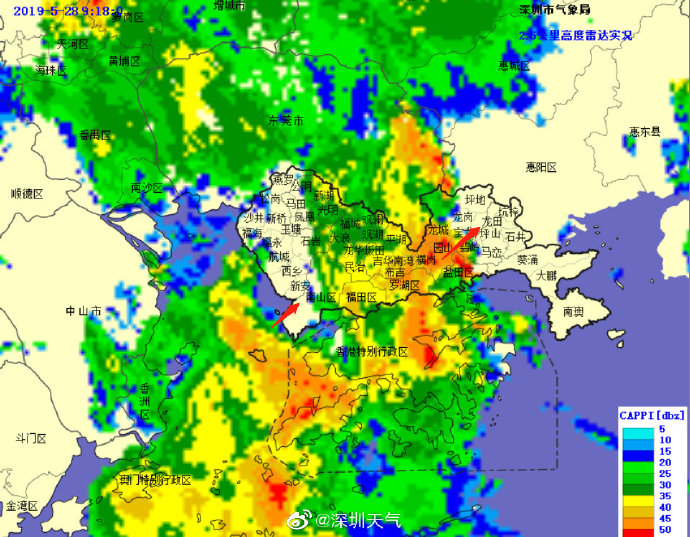 目前強降水中心已移至我市中部地區(qū),未來1-2小時內(nèi)東部地區(qū)將出現(xiàn)20-40毫米降水,深圳市氣象臺于2019年05月28日09時15分將暴雨黃色預(yù)警擴展至全市,全市進(jìn)入暴雨戒備狀態(tài),請注意防范。