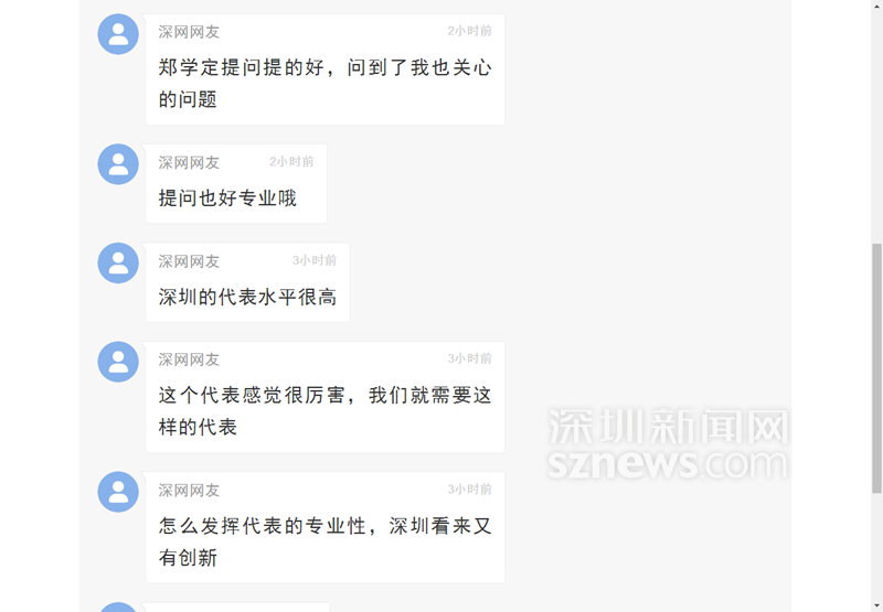 大講堂期間,網(wǎng)友涌入直播頁面以留言的方式對深圳市人大代表大講堂貼近民生的選題表示肯定,不少人大贊深圳市人大代表臥虎藏龍,不光主講嘉賓朱聞博有能力,提問的四個代表(李繼朝、鄭學(xué)定、肖幼美、黃翔)也非常有水平,問到了點子上,“希望代表和專家碰撞出火花,讓深圳的明天更美好”。
