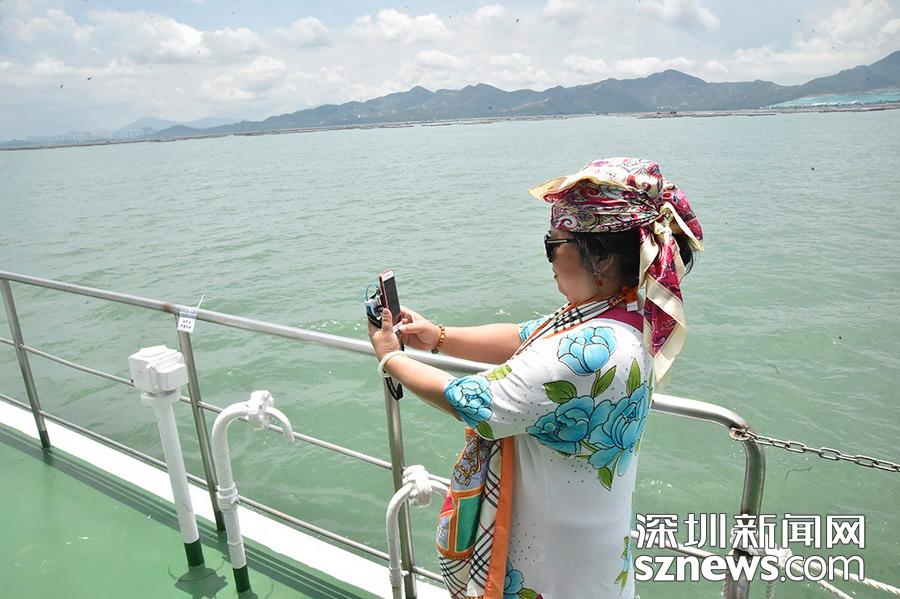 海監(jiān)船上,參觀市民饒有興致地傾聽(tīng)了海監(jiān)漁政執(zhí)法人員關(guān)于我市海洋資源、海島狀況以及海洋執(zhí)法工作的介紹,觀看了深圳灣禁漁區(qū)執(zhí)法管理記錄片,并暢游了我市西部海域海島。