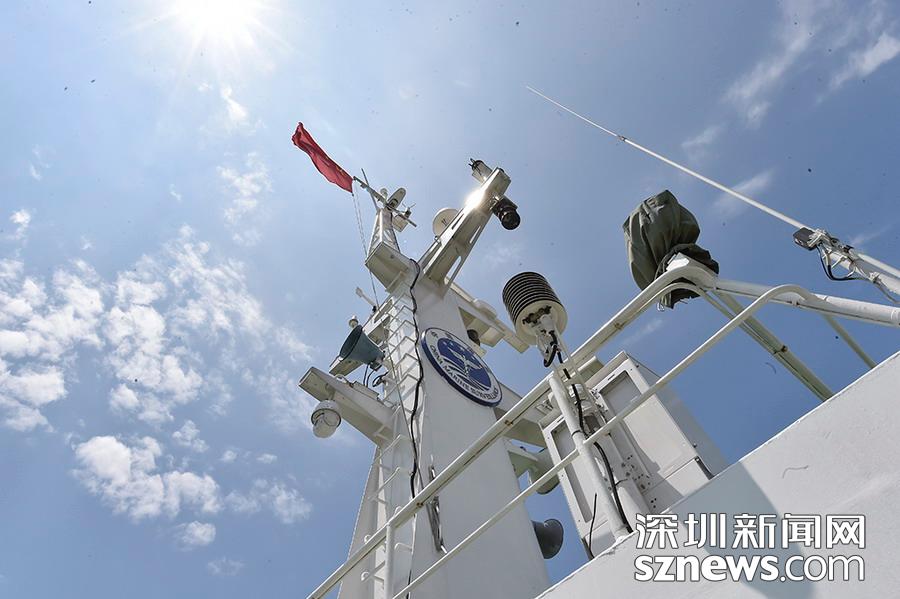 海監(jiān)船頂,五星紅旗迎風(fēng)飄揚(yáng)