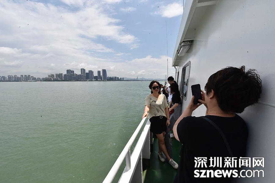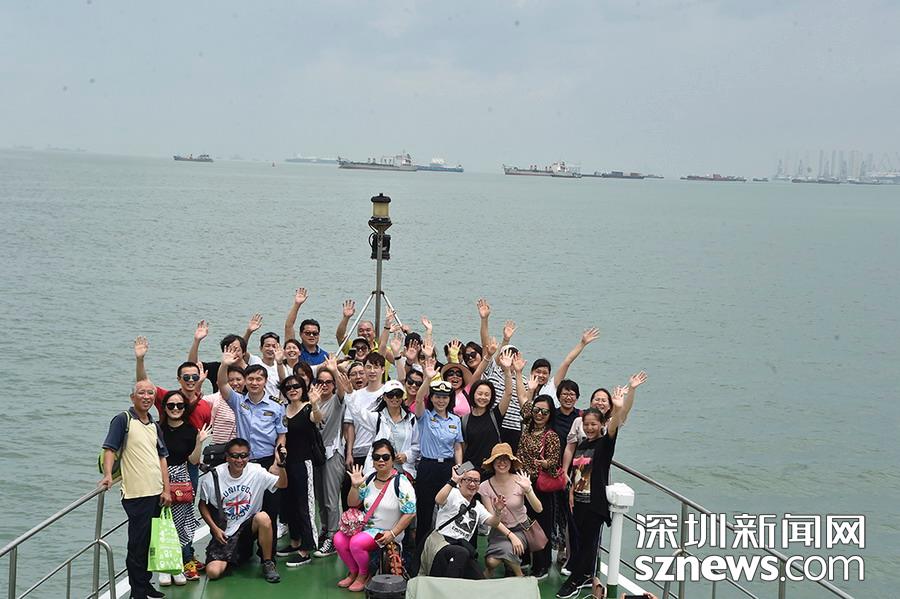 120名市民代表分成兩個(gè)航次乘船出游,每航次60人。中國(guó)海監(jiān)9012船從深圳濱海休閑帶海監(jiān)廣場(chǎng)碼頭起航,市民海上參觀了深圳灣大橋,經(jīng)國(guó)際郵輪母港、SCT碼頭,到大鏟島附近海域,后返回蛇口海監(jiān)基地。