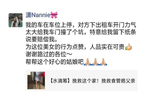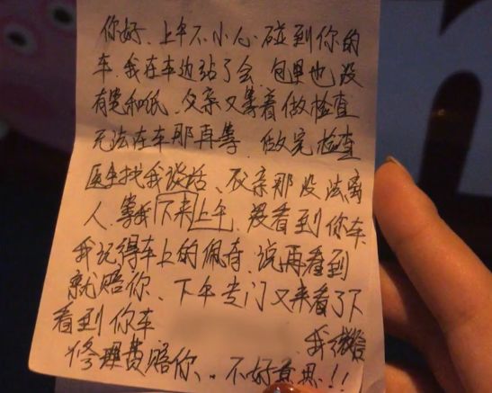 車上留下這樣一張字條: