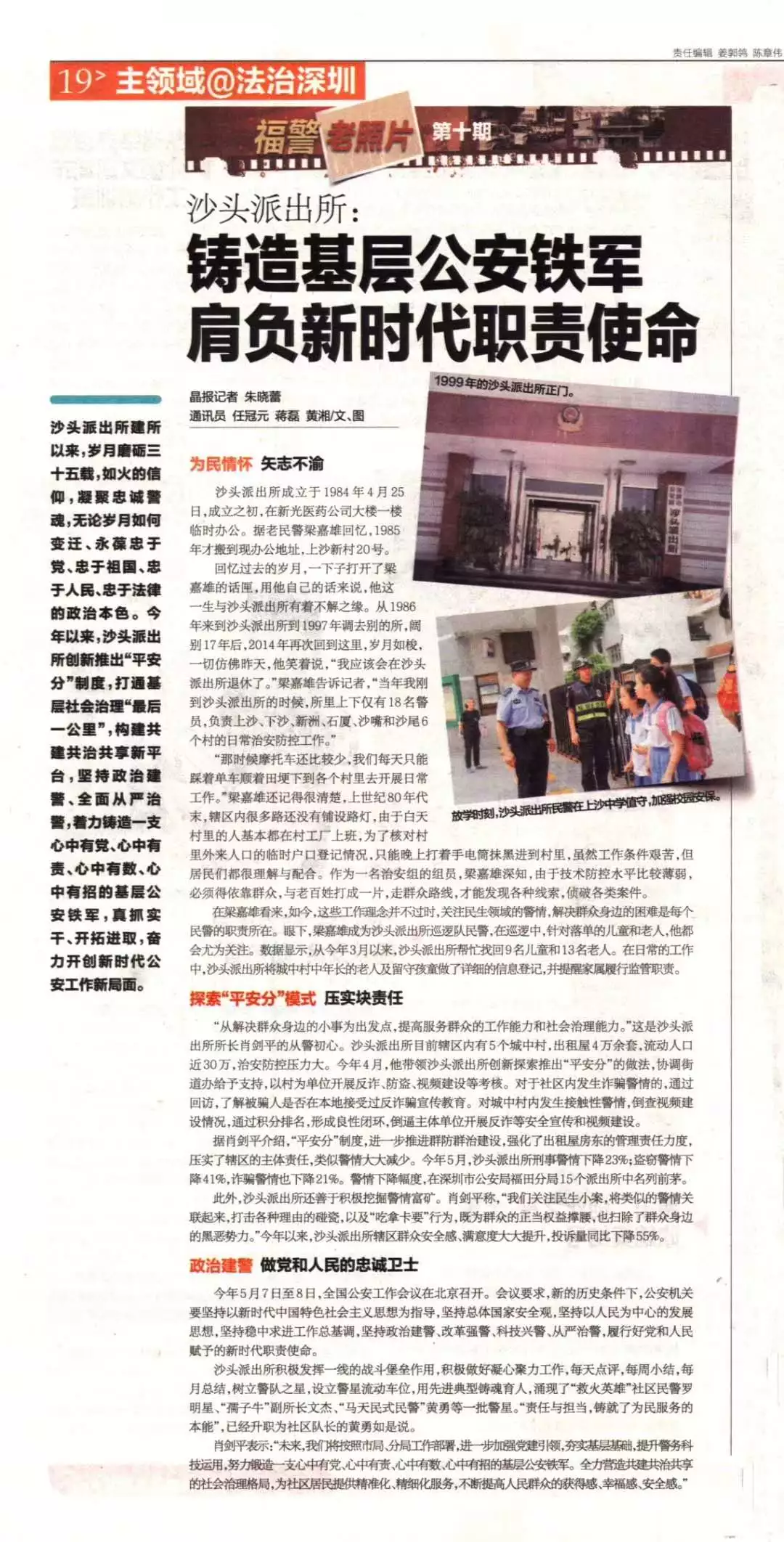 據(jù)肖劍平介紹,“平安分”制度,進一步推進群防群治建設(shè),強化了出租屋房東的管理責任力度,壓實了轄區(qū)的主體責任,類似警情大大減少。今年5月,沙頭派出所刑事警情下降23%;盜竊警情下降41%,詐騙警情也下降21%。警情下降幅度,在深圳市公安局福田分局15個派出所中名列前茅。