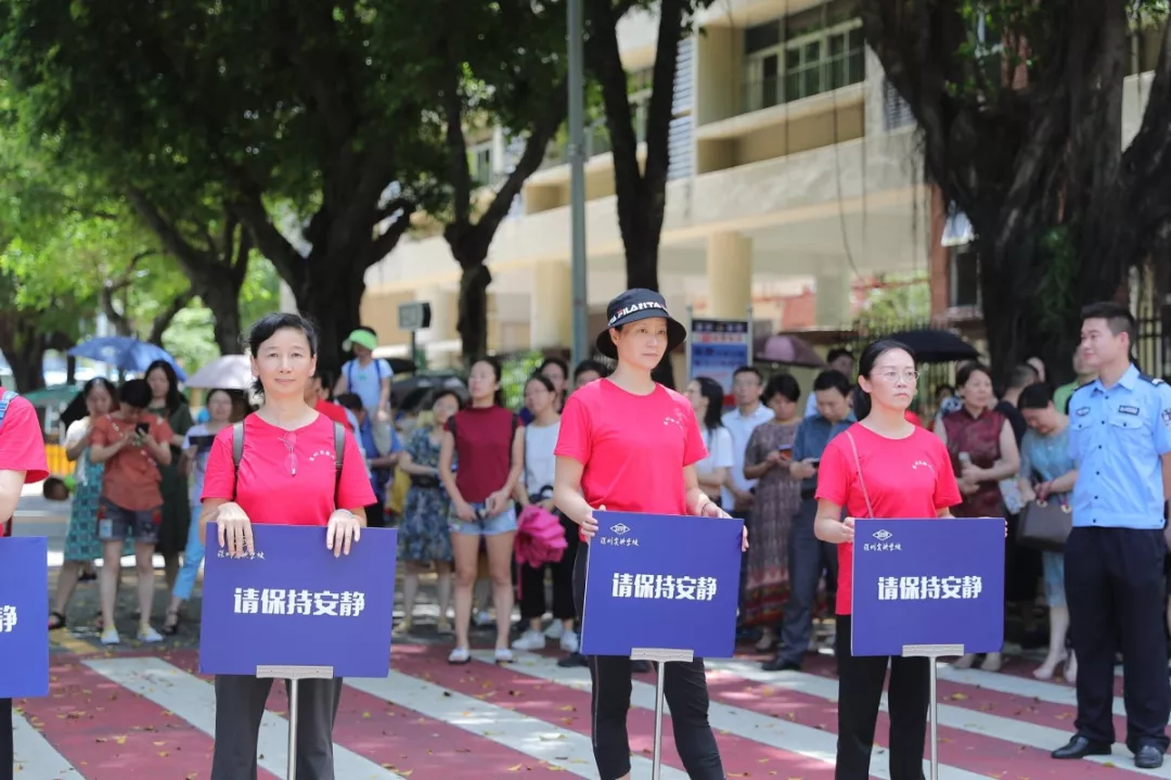 考試開始和結(jié)束時,在深圳實驗學(xué)校中學(xué)部的考場外,家長們自發(fā)組織的義工服務(wù)隊也正在有序地維護(hù)著考場外的秩序。通心嶺派出所積極與本次家長義工服務(wù)隊的成員溝通,在考試結(jié)束后散場時能夠快速緩解人流,保證考場周邊的秩序。