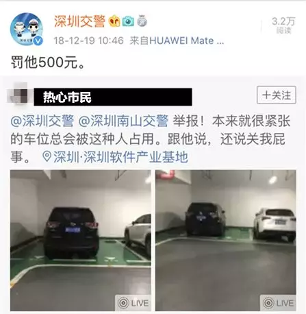 若是車輛在停車場內(nèi)違停,占用消防通道、阻礙車輛通行的可直接向深圳交警舉報,交警來管!
