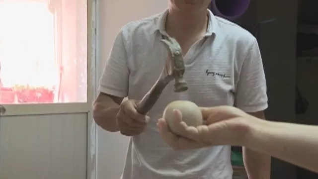 ▲單先生當(dāng)場用錘子實(shí)驗(yàn),石頭異常堅(jiān)硬