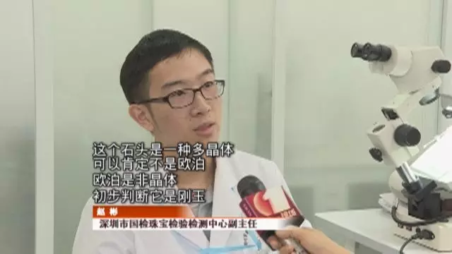 經(jīng)過檢測,工作人員把檢測結(jié)果當(dāng)場向單先生做了解釋。這個(gè)白色圓石的硬度、密度等方面檢測顯示,懷疑它是人工合成的剛玉結(jié)合體,像紅藍(lán)寶石也是屬于剛玉。