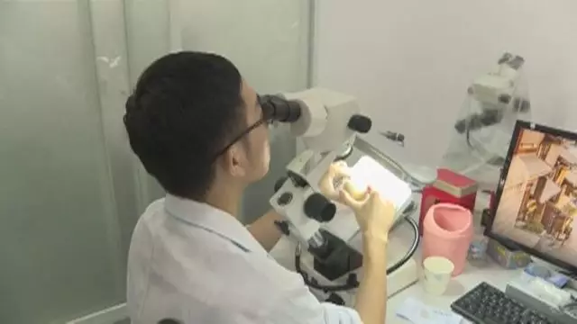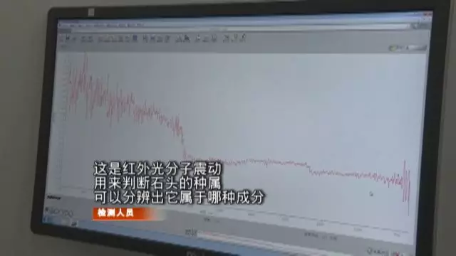 在記者說明來意后,工作人員接過單先生的石頭進(jìn)入實(shí)驗(yàn)室,首先用小電筒和寶石顯微鏡,進(jìn)行外觀檢測。然后將石頭放到這臺(tái),叫“傅里葉變換紅外光譜”的儀器,檢測它的分子結(jié)構(gòu)。