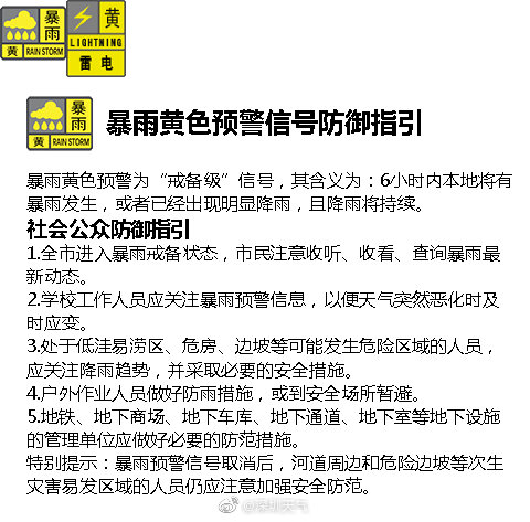 五個預(yù)警信號同時生效,全市已進入暴雨防御狀態(tài)。市民盡量留在安全場所;暫停戶外作業(yè)和活動,危險地帶人員撤離;船舶采取有效措施避風(fēng);請市民遠離海邊,避免海上活動;地下設(shè)施管理單位采取有效防御措施;人員和車輛應(yīng)盡量避開積水路段及涵洞等低洼易澇區(qū);河道、水庫等危險地帶和危房中的人員撤離;對低洼地段室外供用電設(shè)施采取安全防范措施。