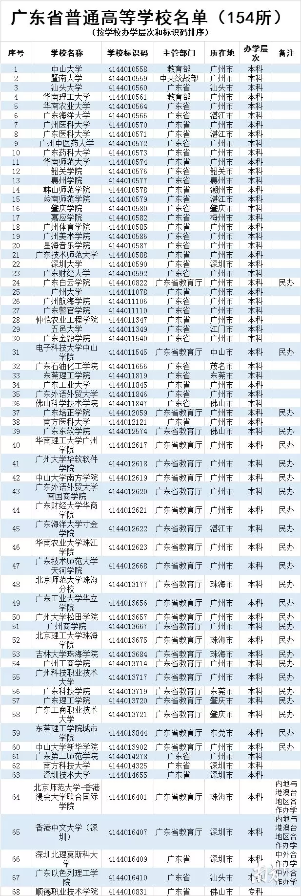 統(tǒng)計(jì)發(fā)現(xiàn),廣東有154所普通高校。與往年不同的是,今年廣東江門(mén)幼兒師范高等專(zhuān)科學(xué)校、廣東財(cái)貿(mào)職業(yè)學(xué)院兩所新設(shè)立高校在省政府批準(zhǔn)、教育部備案后,并正式啟動(dòng)招生。
