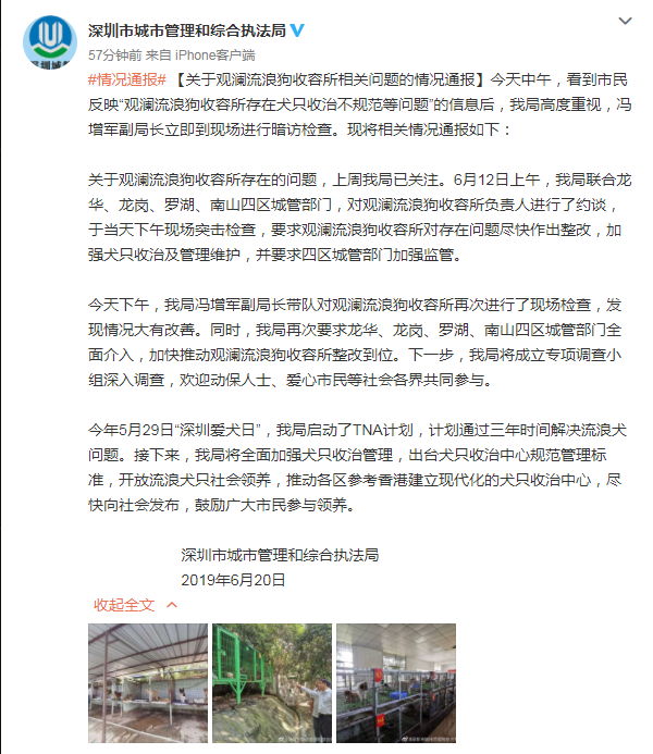 關(guān)于觀瀾流浪狗收容所相關(guān)問題的情況通報