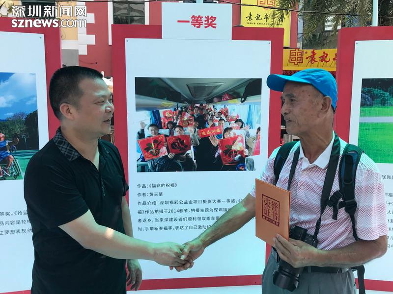 “我從報紙上看見深圳福彩舉辦的返鄉(xiāng)活動,覺得這個做公益獻(xiàn)愛心的活動讓我很感動。我想通過我的照片來彰顯深圳是一個大愛的城市,來讓大家看到深圳福彩的愛心宗旨?!?2歲的黃天肇憑借《福彩的祝?!纷髌窐s獲本次大賽一等獎。作為資深的攝影愛好者,他從深圳福彩舉辦“愛心福彩資助來深建設(shè)者春節(jié)返鄉(xiāng)”活動開始,用相機(jī)記錄了十余年,“那個時候我都是用的傻瓜相機(jī)拍,獲獎的作品就是我用傻瓜相機(jī)拍的,直到這兩年才開始用數(shù)碼相機(jī)。”對于此次展覽,黃天肇認(rèn)為深圳福彩組織選出的98張照片,承載著深圳對孤寡老人、弱勢群體、特困戶的關(guān)心,彰顯了深圳人的大愛,也激發(fā)市民通過購彩的方式奉獻(xiàn)愛心,他表示會一直用照片銘記這些珍貴的記憶。