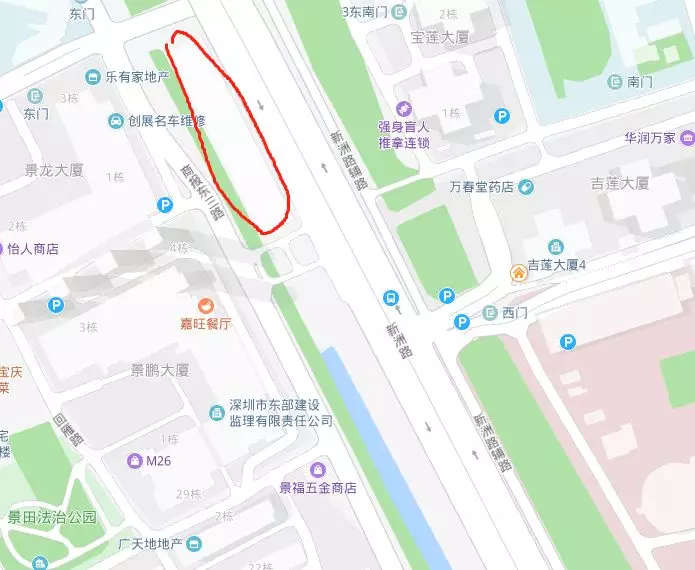 最近的公交站臺是景鵬大廈,