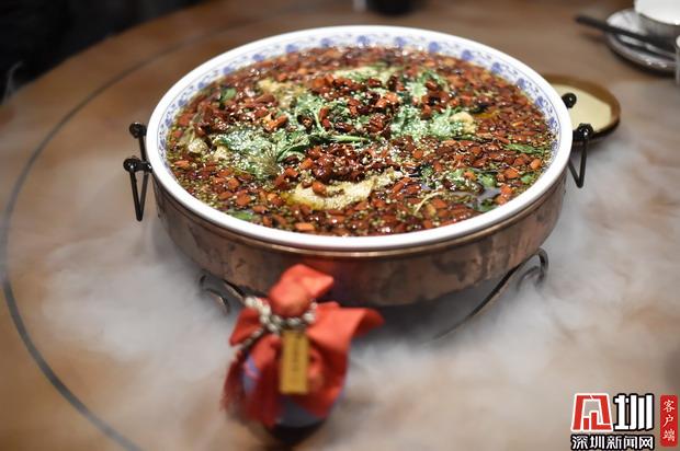 首先上的招牌水煮魚(yú)!豪爽的淺底大盆,魚(yú)片上鋪著滿滿的花椒、干辣椒、薄荷葉,肉質(zhì)肥厚鮮嫩,花椒與油的結(jié)合更多在味覺(jué)上帶來(lái)麻的香氣,商家根據(jù)深圳人的味覺(jué)偏好,進(jìn)行了口味改良,減去了許多辣味,溫柔,想起在重慶被辣哭的經(jīng)歷,瞬間覺(jué)得這家店好溫柔。因?yàn)槭钦麠l鱸魚(yú)的原因,還是有點(diǎn)魚(yú)刺,吃的時(shí)候不要顧著暢快淋漓而哽到喉嚨。