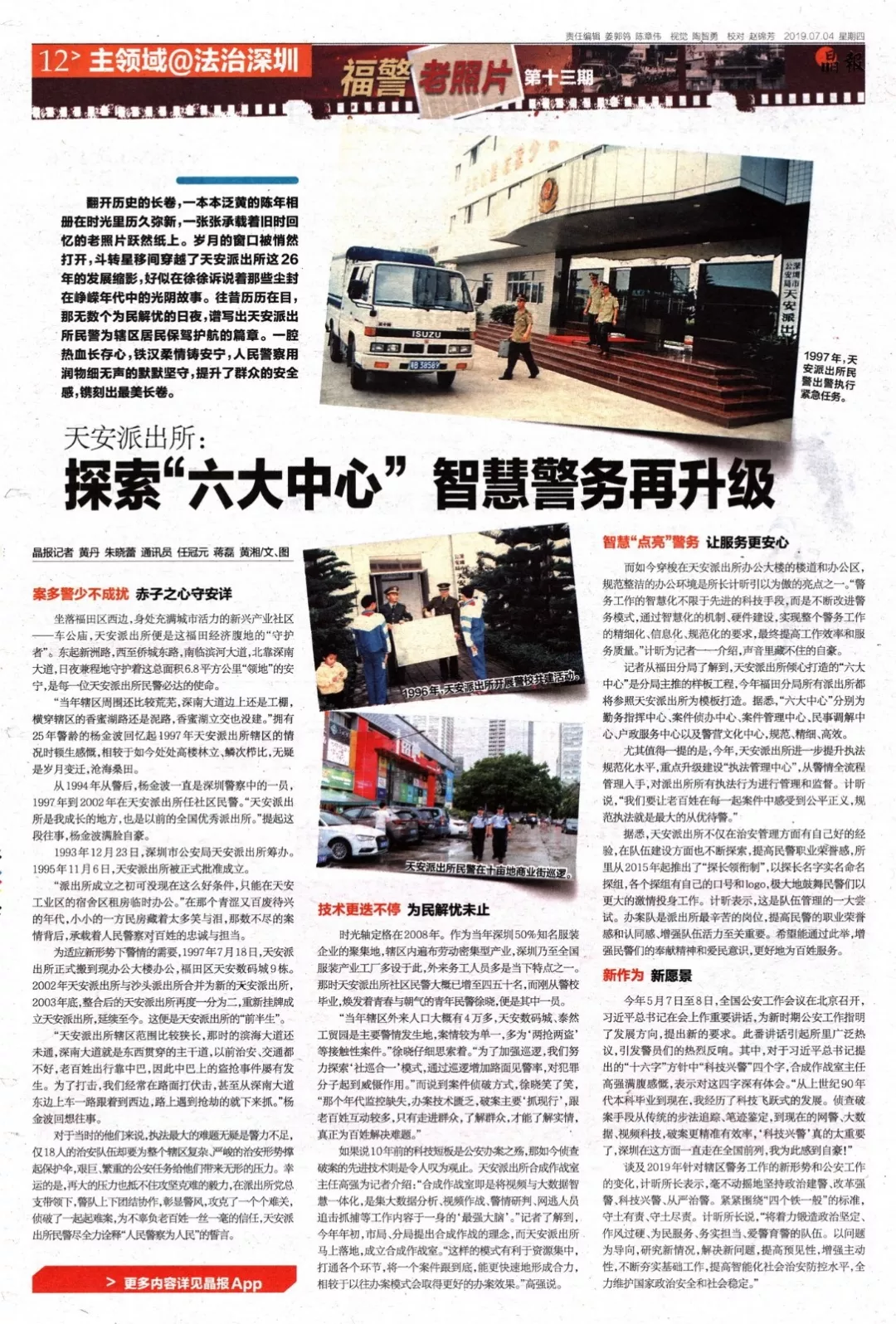 為適應(yīng)新形勢下警情的需要,1997年7月18日,天安派出所正式搬到現(xiàn)辦公大樓辦公,福田區(qū)天安數(shù)碼城9棟。2002年天安派出所與沙頭派出所合并為新的天安派出所,2003年底,整合后的天安派出所再度一分為二,重新掛牌成立天安派出所,延續(xù)至今。這便是天安派出所的“前半生”。