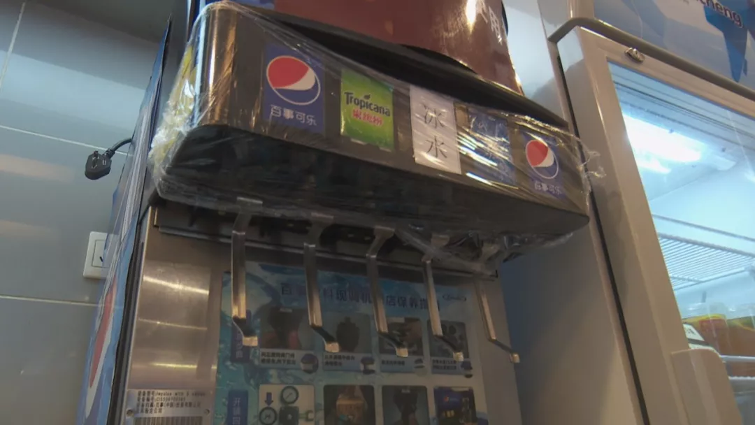 今天中午,記者跟隨轄區(qū)市監(jiān)所執(zhí)法人員來到涉事門店現(xiàn)場檢查。據(jù)了解,2號事發(fā)后,店里的這臺飲料機已經(jīng)暫停使用,目前飲料出口是用保鮮膜封住的。店方稱,飲料機,每個月由百事可樂廠家人員深層清洗一次,他們的員工是每天對飲料機的糖漿管道和濾嘴進行清洗,都有清洗記錄。