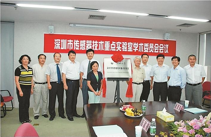 ▲李學金(左五)參加深圳市傳感器重點實驗室揭牌成立儀式。