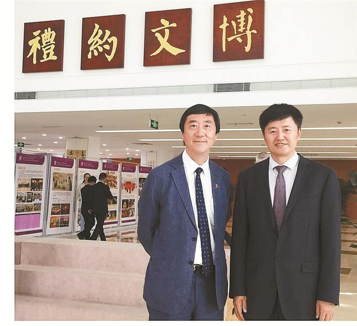 ▲李學金(右)與香港中文大學第七任校長沈祖堯。
